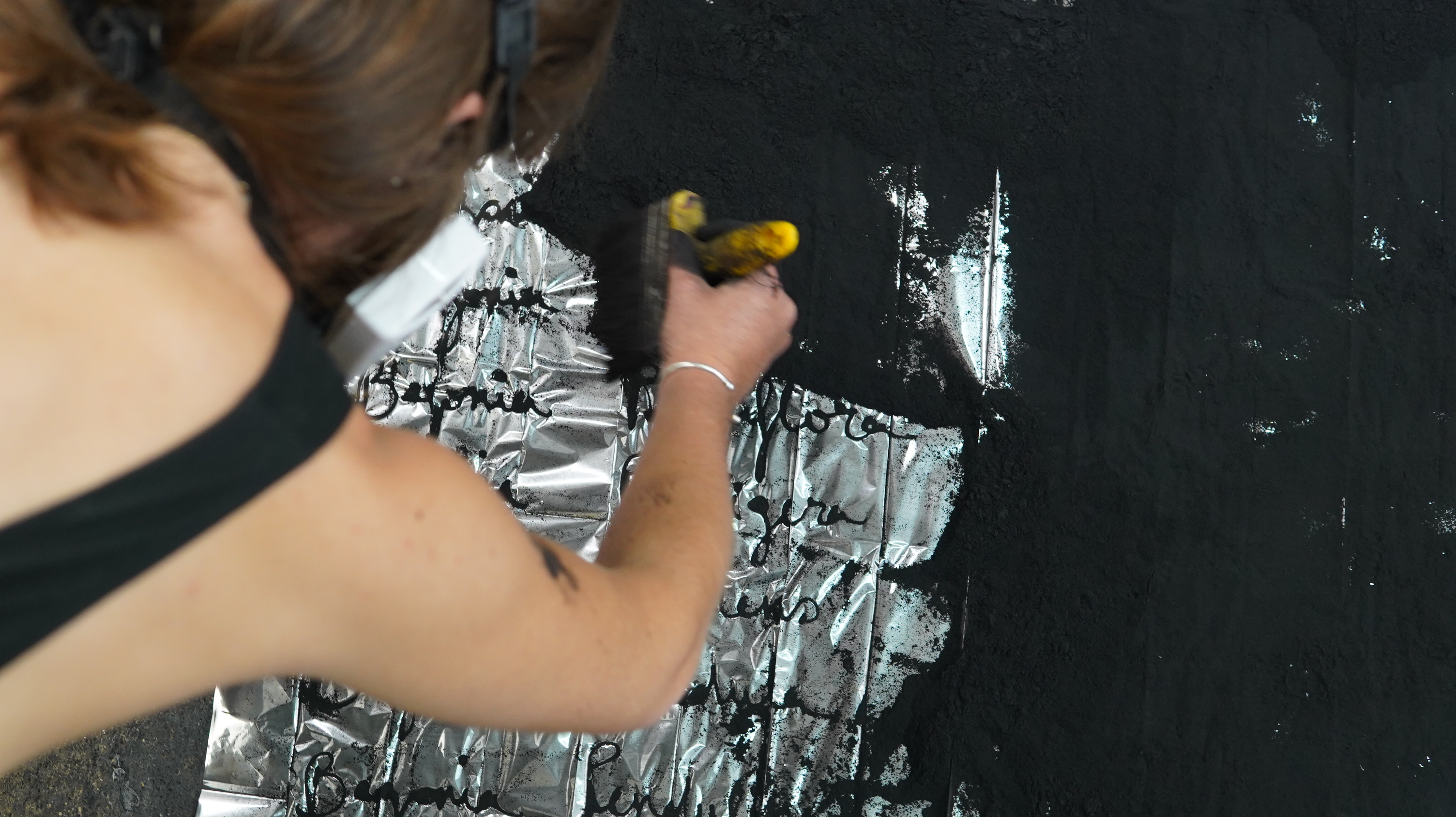 ’2094 Begonias’ is an installation of 27 emergency blankets. On the blankets the entire list of existing species of begonia is written. Written and embedded – seared even – with a process based on charcoal. Alongside the blankets, a large quantity of begonias were planted on the gallery floor. This work questions the gesture of writing in learning, our awareness of botanical species and notions of materiality in a time of fragile virtual information. It make us reflect on where we get flora knowledge nowadays, how all knowledge is transferred and from whom?